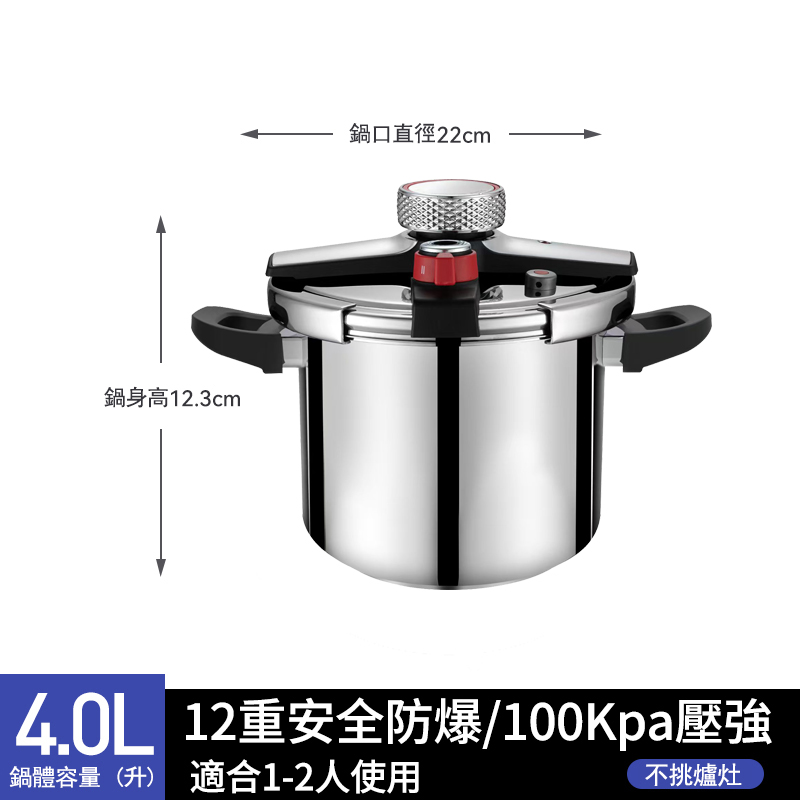25分鐘前【2025年開春季】燃氣電磁爐通用【德國進口】304不鏽鋼壓力鍋 煮飯/熬粥/炖肉 自動限壓閥排氣保護安全防爆 耐用20年不壞 不滿意包退換 - 升級版八重保護304不鏽鋼重力閥4L強力壓力鍋(1-2人)