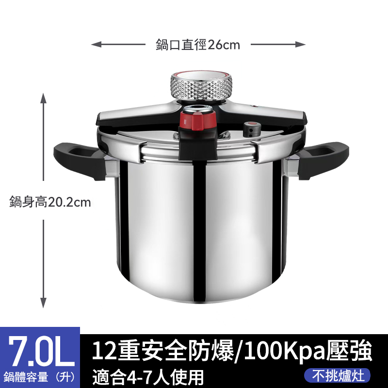 20分鐘前【2025年開春季】燃氣電磁爐通用【德國進口】304不鏽鋼壓力鍋 煮飯/熬粥/炖肉 自動限壓閥排氣保護安全防爆 耐用20年不壞 不滿意包退換 - 升級版八重保護304不鏽鋼重力閥7L強力壓力鍋(4-7人)