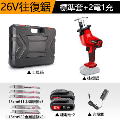 15分鐘前【德國精工鋰電鋸】鋼、鐵、磚頭、木材,統統都能鋸!續航久、充電快,方便攜帶,一機多用 - 26V德國精工往複鋸(機頭+1充2電)贈工具箱+5鋸條NT$2290