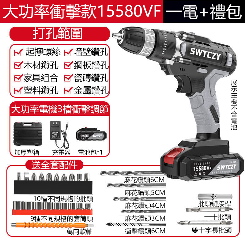 15分鐘前德國大功率 雙速衝擊鋰電鑽 純銅電機 無極變速 雙軸承設計 十年換新 - 進口衝擊15580VF塑箱1電+豪禮 NT$1680