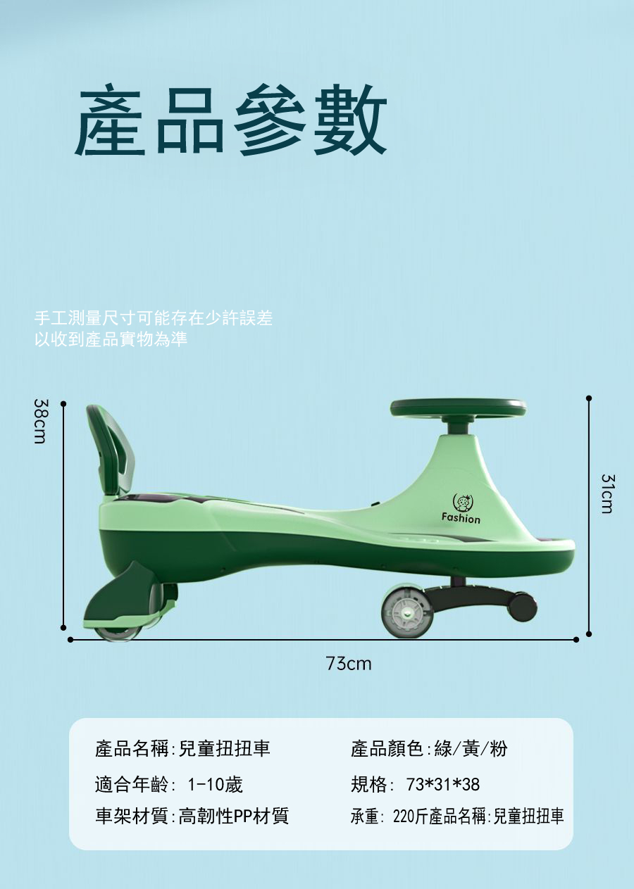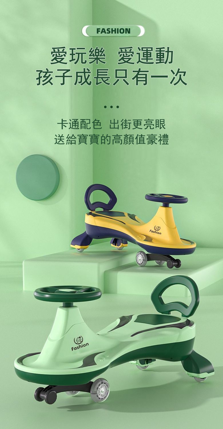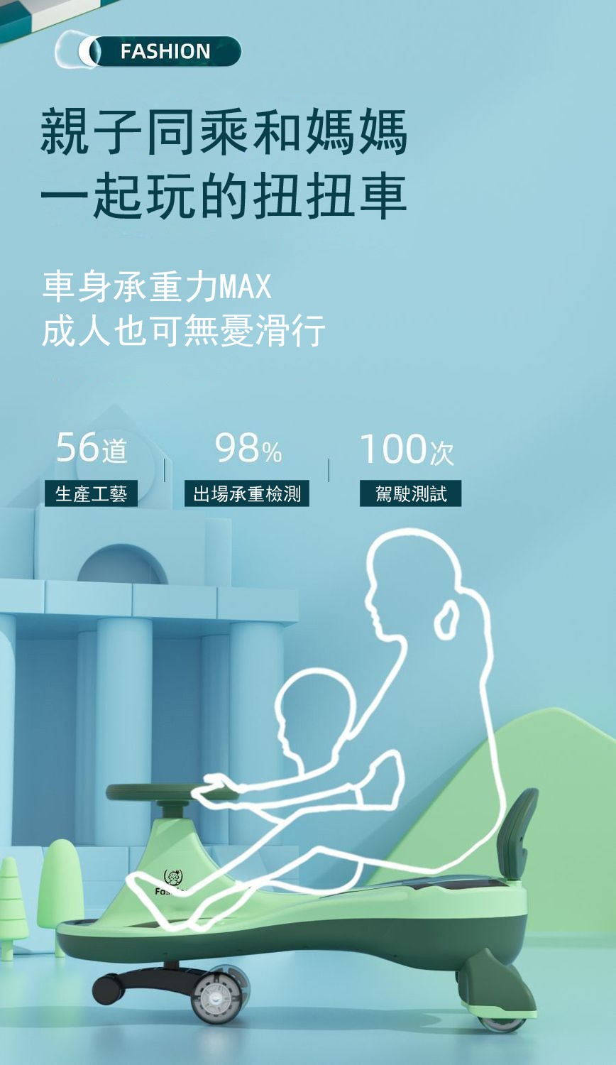 20分鐘前【日本東京熱銷】兒童扭扭車,寶寶大人都可坐 - 高配款 靜音閃光輪+音樂燈光 NT$1750