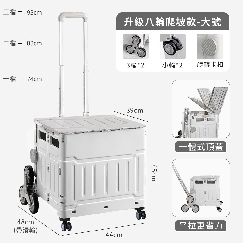 12分鐘前【折疊購物車】買菜購物免提重,爬樓搬運超省力!大容量好收納,露營野餐隨拉隨走,居家外出都好用! - 【八輪爬坡款(大號)】 加厚帶蓋 灰色 NT$2390
