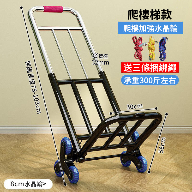 半小時前【折疊購物車】買菜購物免提重,爬樓搬運超省力!大容量好收納,露營野餐隨拉隨走,居家外出都好用! - 【搬家爬樓利器】特大號六輪爬樓款+3根捆綁繩 NT$1990