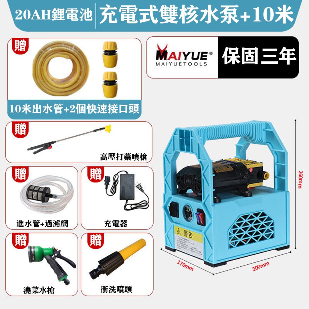 半小時前全台首推,好評爆滿!德國MAIYUE鋰電充電式抽水泵,澆菜/打藥/洗車/灌溉,輕鬆都能搞定‼️ - 20A鋰電雙核水泵[使用時長4-5小時](贈10米水管)