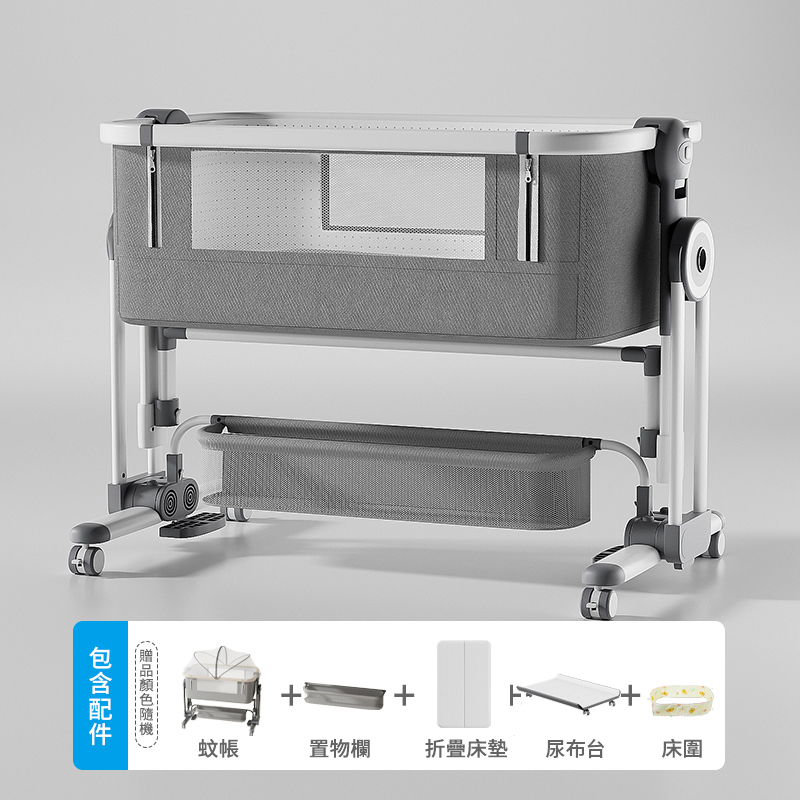 15分鐘前熱銷萬台!【寶寶的專屬空間】免安裝可折疊多功能嬰兒床,一床多用可移動、可搖擺,輕鬆拼接大床陪睡! - 【尊享款】床墊+置物籃+蚊帳+尿佈台+床圍