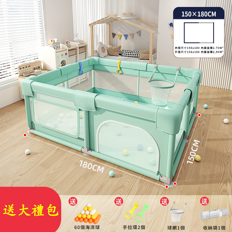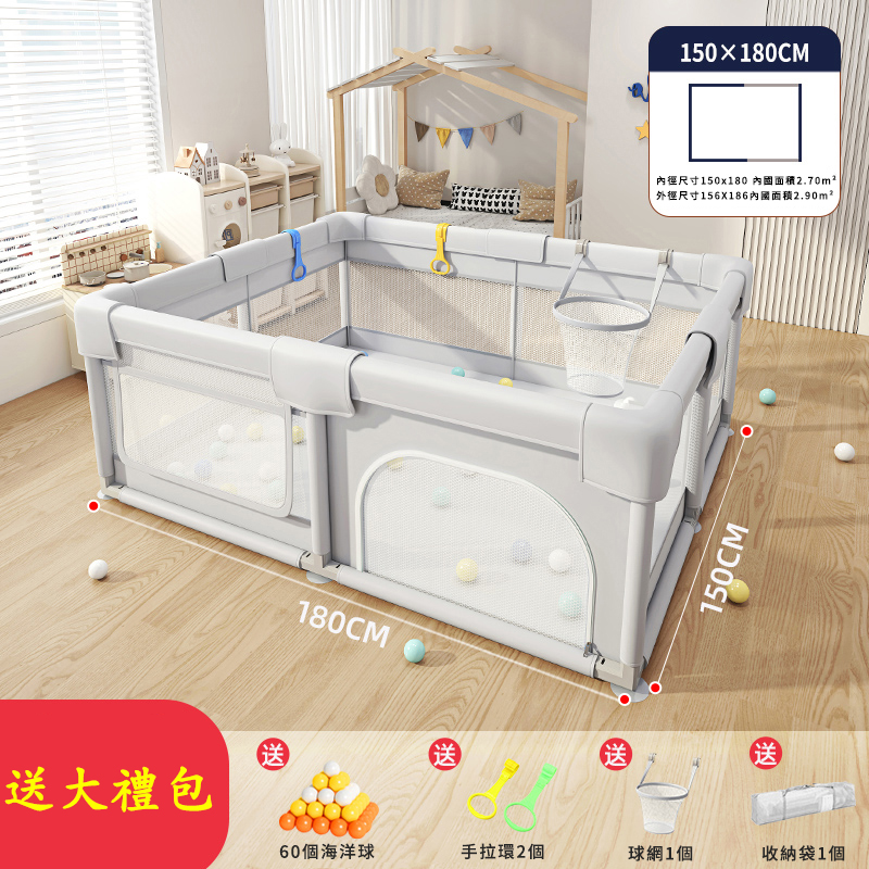 半小時前爸媽社團一致好評!寶寶玩得安心,爸媽終於能喝口熱咖啡【全台熱銷】可移動嬰兒遊戲圍欄!安全防護+防撞設計+輕鬆收納!,室內安全必備! - 150 X 180公分 +小球框+大禮包